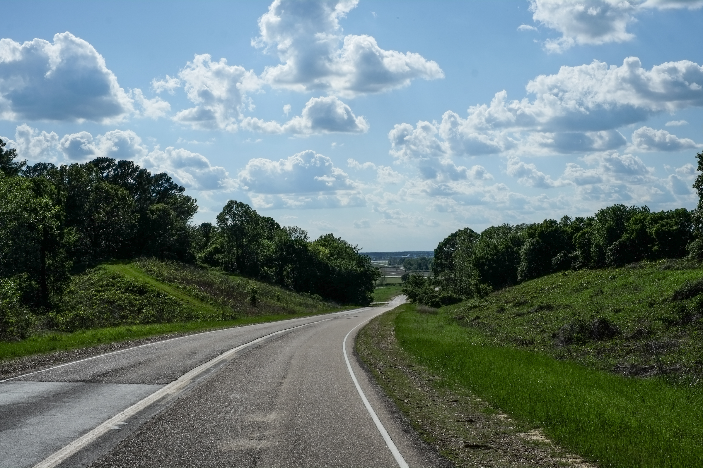 DSCF8645 ← Previous Next → Dropping out of the hills into the Mississippi Delta. It gets very flat for a long time after this.
